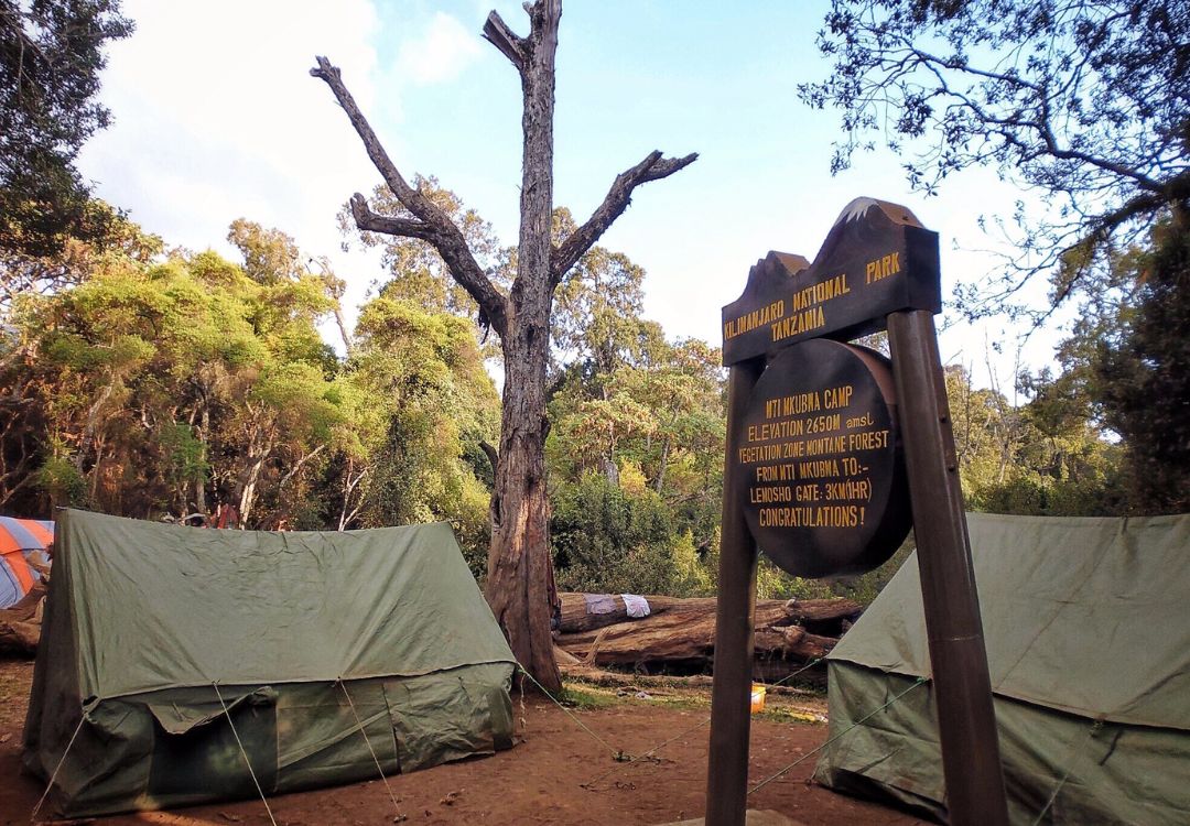 Drive to Lemosho Gate for registration, then start hiking through rainforest to Mti Mkubwa Camp. Quiet trails and a great first day.